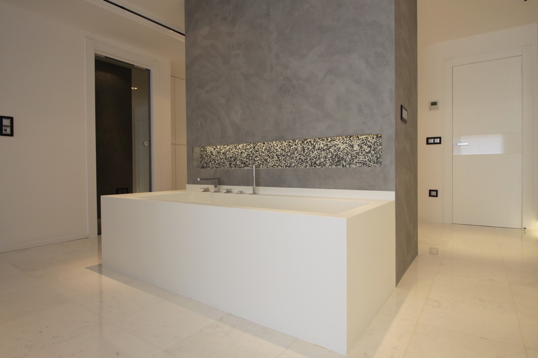 Il peut être appliqué sur n’importe quel support et ne jamais craquer. Son application se traduit par un revêtement continu aux effets marbrés, sans joints et d’une épaisseur maximale de 2 mm.
