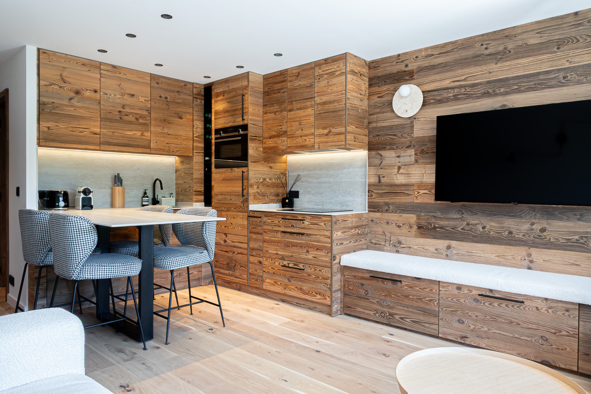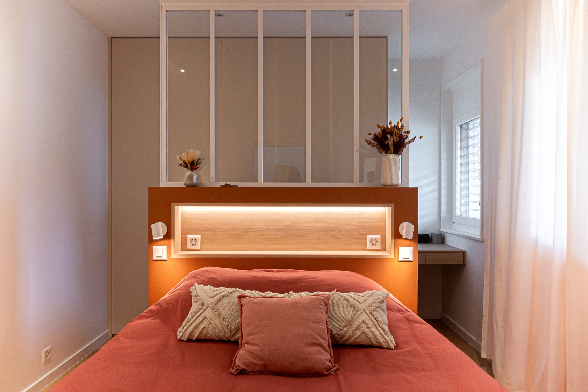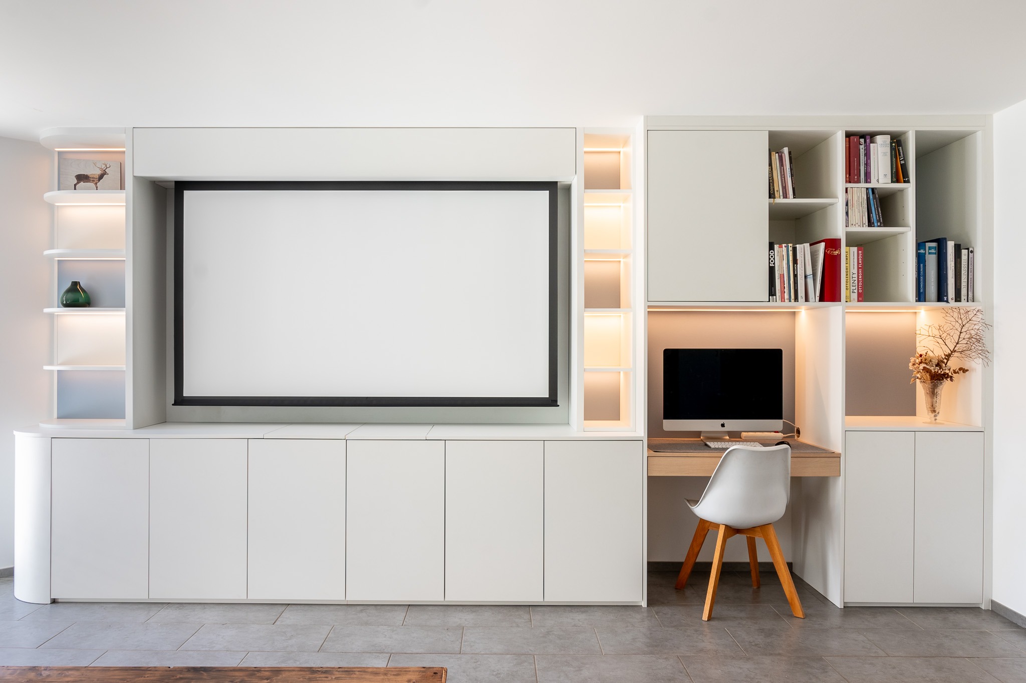 Nous concevons des meubles sur mesure haut de gamme adaptés à tous les styles d'intérieur et à tous les besoins : dressings, bibliothèques, meubles TV, têtes de lit, bureaux intégrés, rangements sous escalier, banquette avec coffre, séparations décoratives ou encore agencements techniques pour cuisine ou salle de bain. Chaque meuble est conçu pour améliorer votre aménagement intérieur et optimiser l'espace.